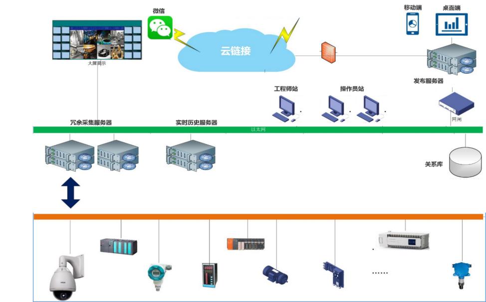 綜合監(jiān)控層:部署數(shù)據(jù)庫(kù)軟件和SCADA軟件,把傳輸?shù)街行亩说臄?shù)據(jù)通過(guò)計(jì)算和存儲(chǔ)為生產(chǎn)安全提供有力的數(shù)據(jù)支撐,通過(guò)實(shí)時(shí)/歷史數(shù)據(jù)可以對(duì)各子系統(tǒng)的安全生產(chǎn)狀況進(jìn)行綜合性動(dòng)態(tài)分析,為科學(xué)決策提供依據(jù)。管控一體化平臺(tái)的建設(shè),將有助于各級(jí)管理人員、技術(shù)人員及時(shí)準(zhǔn)確了解現(xiàn)場(chǎng)設(shè)備生產(chǎn)運(yùn)行所需的各類(lèi)信息,可通過(guò)調(diào)度中心的大屏、各個(gè)子站的運(yùn)行客戶(hù)端、遠(yuǎn)程用戶(hù)可通過(guò)WEB發(fā)布方式進(jìn)行遠(yuǎn)程瀏覽訪問(wèn)現(xiàn)場(chǎng)設(shè)備運(yùn)行數(shù)據(jù)信息。