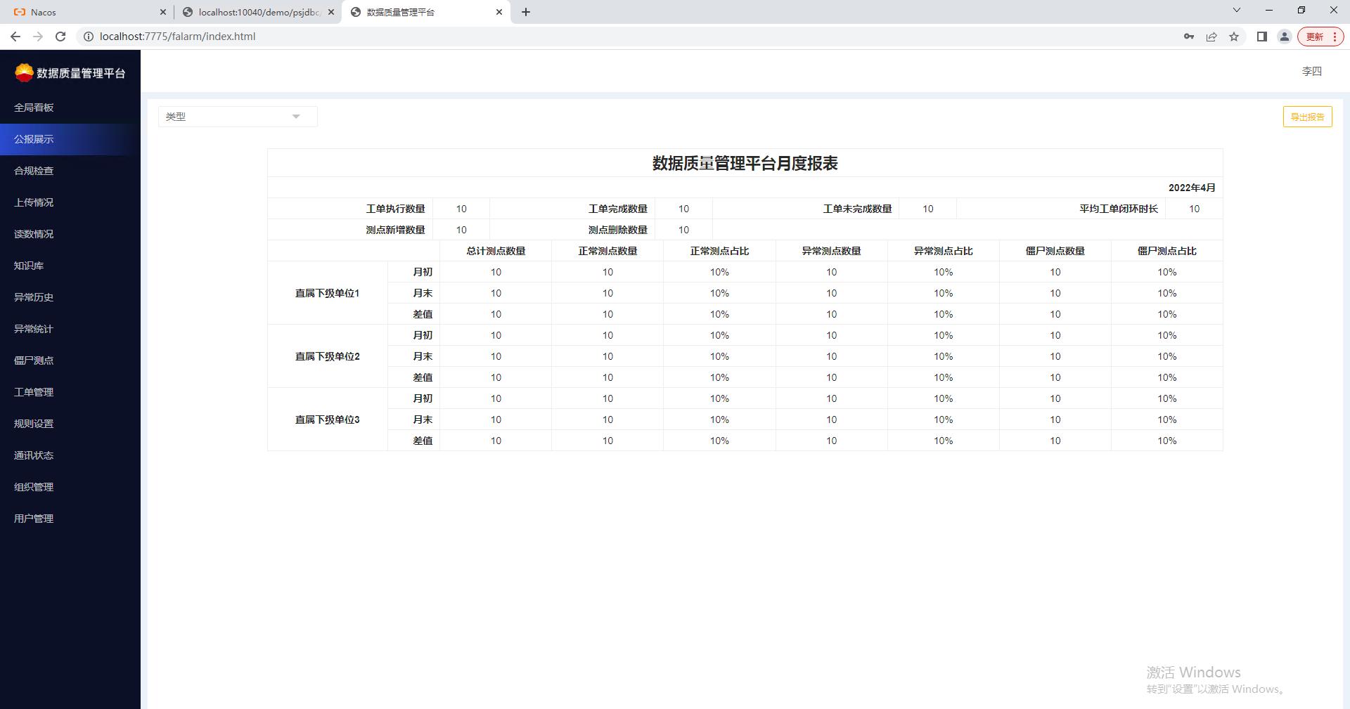 數(shù)據(jù)質(zhì)量管理系統(tǒng)/公報(bào)展示