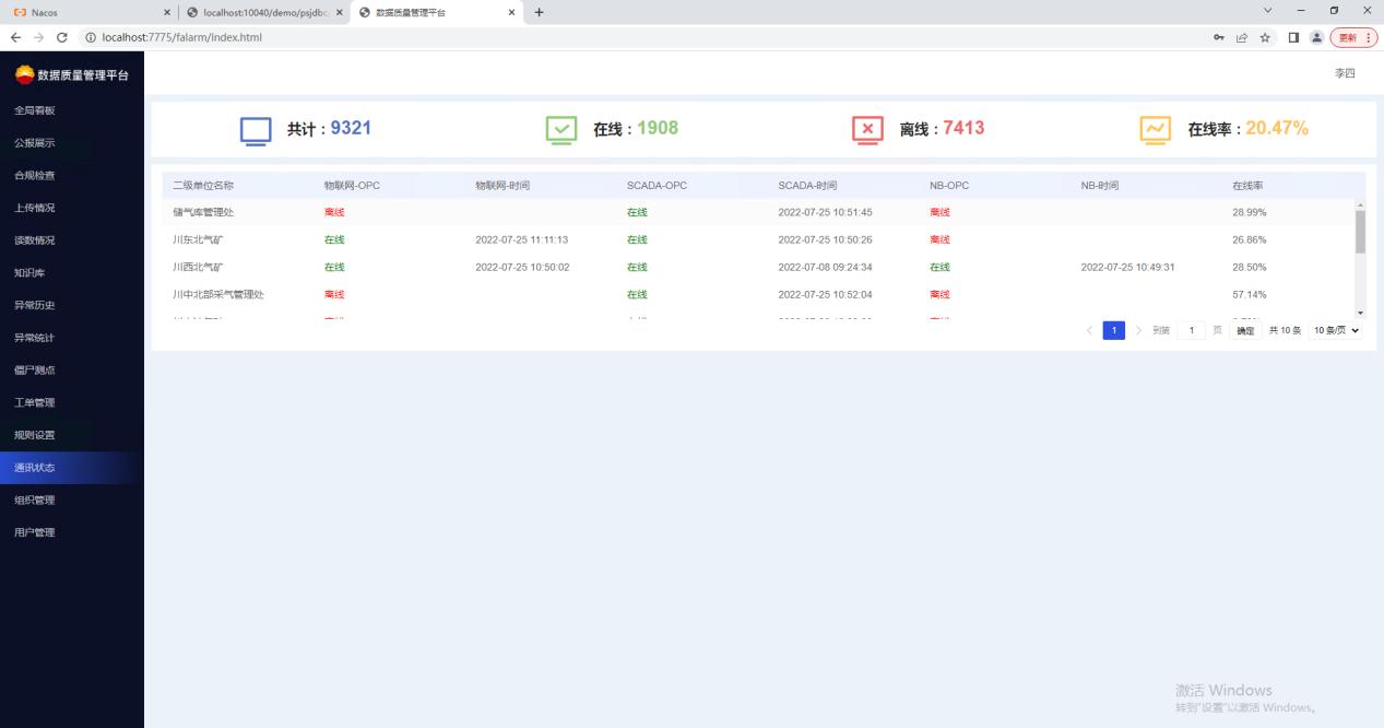 數(shù)據(jù)質(zhì)量管理系統(tǒng)/通訊狀態(tài)