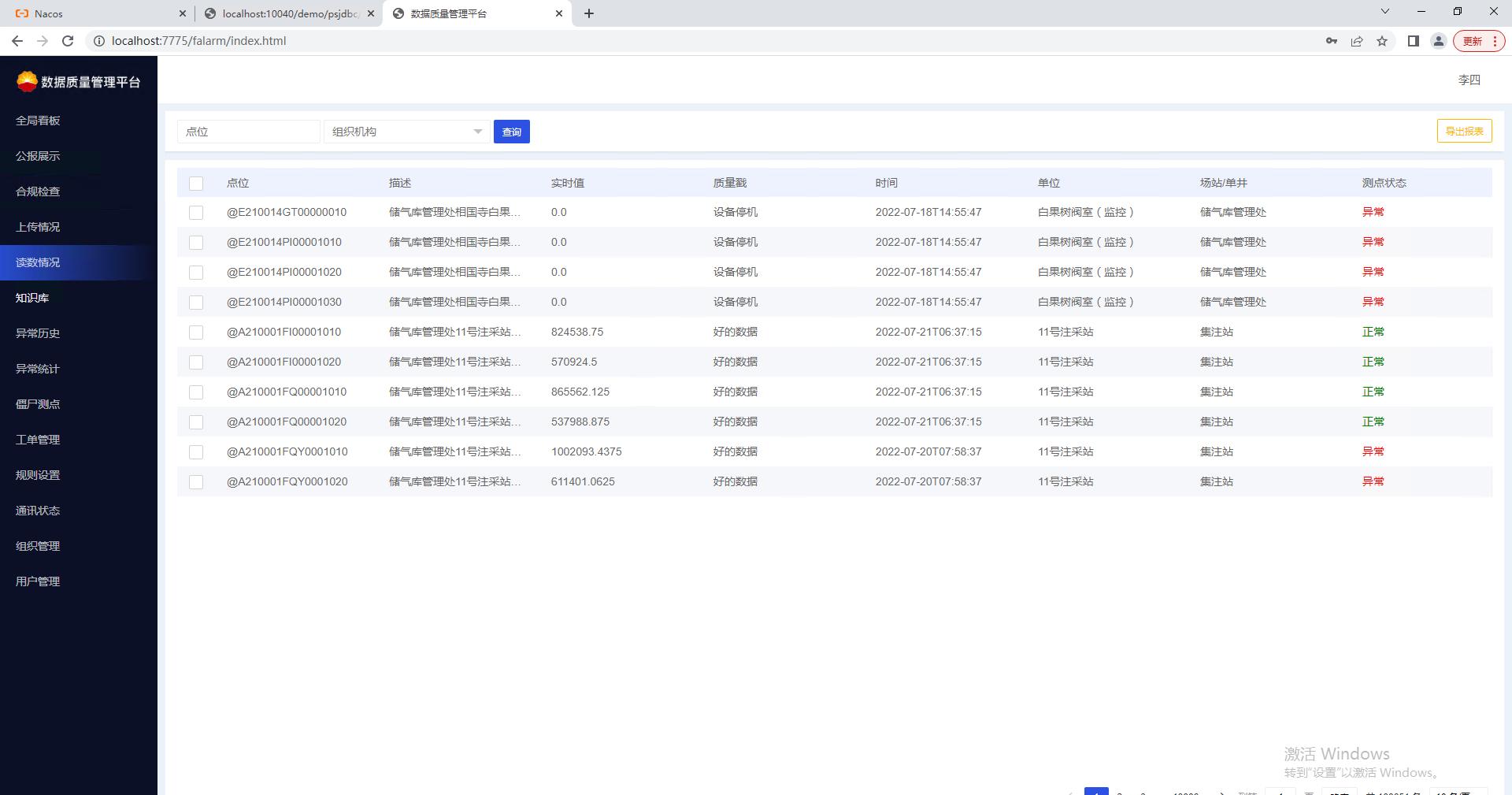 數(shù)據(jù)質(zhì)量管理系統(tǒng)/讀數(shù)情況