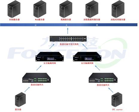 內操巡檢系統采用PFC-HK6510數據采集網關通過DCS系統的OPC接口采集重點路線上巡檢數據。經過安全隔離網閘隔離后以CommServer 協議將數據上傳到pSpace數據庫。利用CommServer協議的斷線緩存功能和pSpace 實時數據庫的數據回補功能,保證數據的完整性和準確性。通過.net接口將內操巡檢系統的實時報警信息推送到智能巡檢平臺。Web服務器上安裝了FsmartWorx軟件,通過FsmartWorx自帶的圖形編輯功能,將內操巡檢監控點位以圖形和表格等多種方式展現。FsmartWorx 工程界面運行后,能根據每個頁面的URL地址單獨訪問特定的頁面。在巡檢平臺設置相應的標簽,嵌入相應巡檢裝置頁面的URL地址,實現了內操巡檢與智能巡檢平臺的無縫融合。