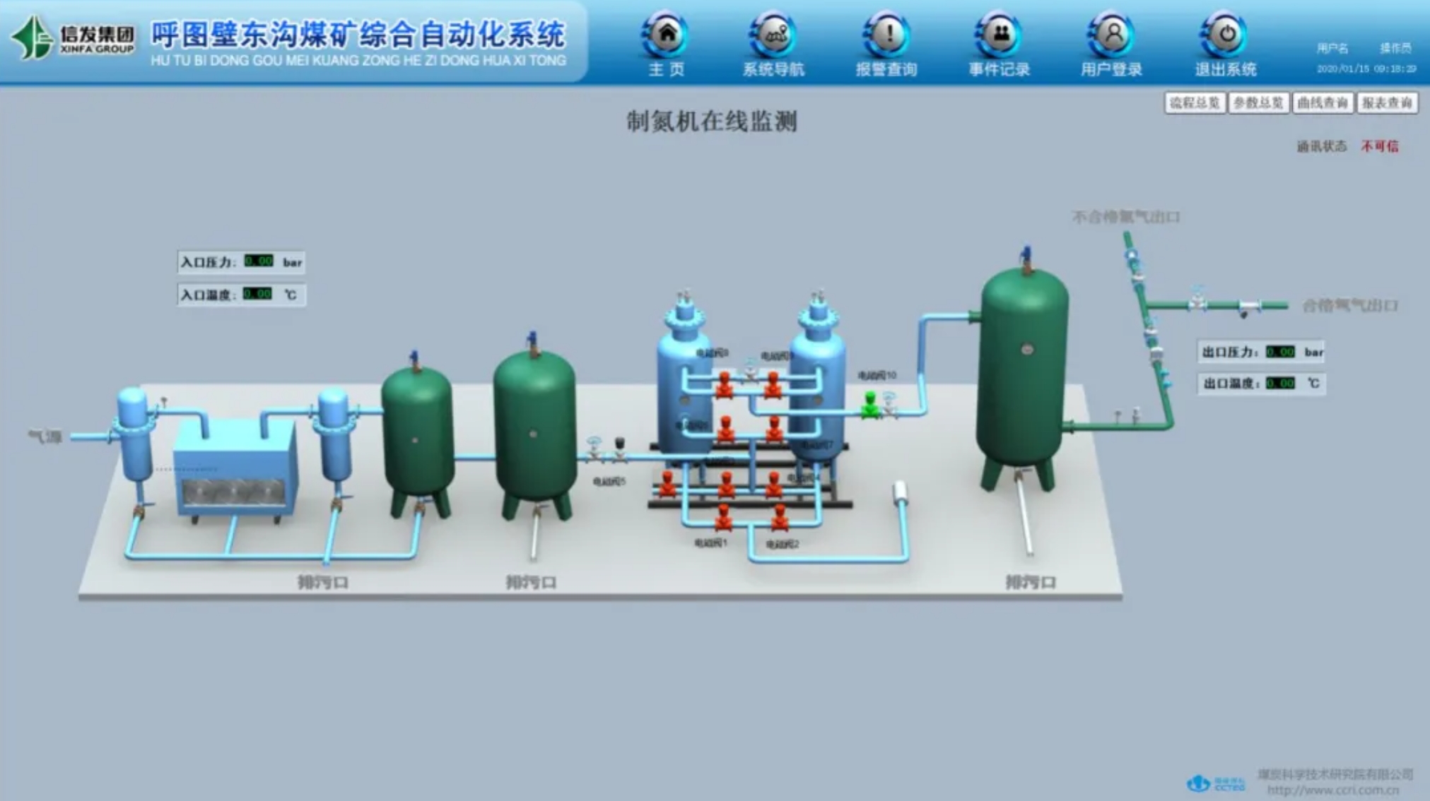 制氮機組運行模塊的實時數(shù)據(jù),及時完整有效地傳入在線監(jiān)控系統(tǒng),并將符合防火注氮要求的氮氣數(shù)據(jù)傳至數(shù)據(jù)后臺服務(wù)器,便于調(diào)度后臺人員實時監(jiān)控,并給采空區(qū)注氮效果提供數(shù)據(jù)參考,達到有效降低控制安全隱患的效果。