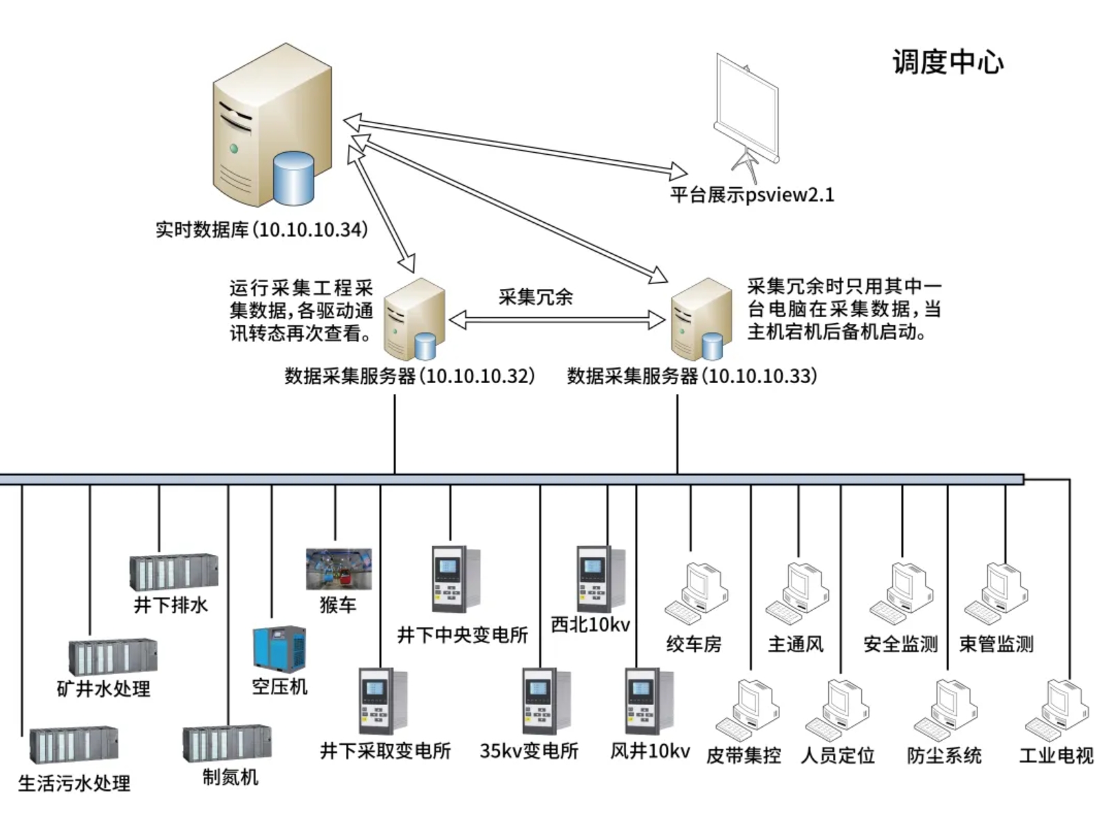 同時通過對各子系統(tǒng)數(shù)據(jù)的統(tǒng)一采集、集中存儲、立體展示、按需查詢,能夠為生產(chǎn)調(diào)度提供準確、全面的數(shù)據(jù)支撐,系統(tǒng)故障追憶,最終實現(xiàn)煤礦安全生產(chǎn)的一體化、數(shù)字化、可視化目標。
