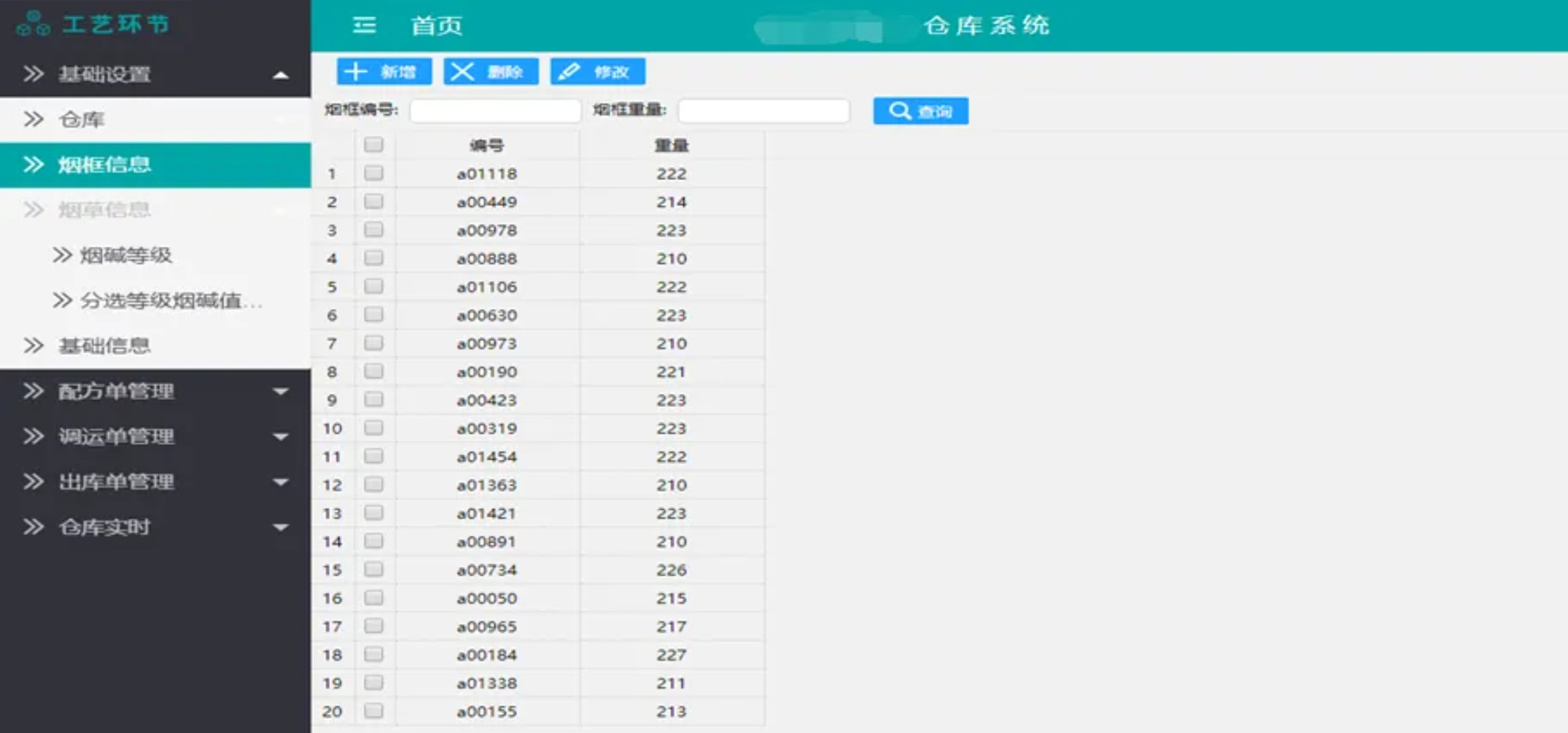 主要包含倉庫、煙框、煙草等信息的維護。