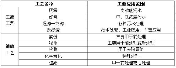 目前國內(nèi)外滲濾液的處理工藝有生物處理、物化處理、土地處理等多種。一般情況下須將兩種以上處理技術(shù)合理組合, 處理后的滲濾液才能達(dá)標(biāo)排放。下表所示為常用垃圾滲濾液處理工藝。