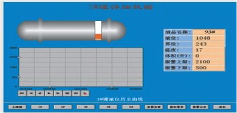 4)歷史數(shù)據(jù)查詢與管理:可以曲線的形式顯示各監(jiān)測參數(shù)隨時間變化的曲線,同時對最大最小值及平均值進行顯示。實時計算和顯示油庫油品存量,用棒圖和數(shù)據(jù)表顯示所有油品的即時存量和空容量、體積、質(zhì)量。在無進出油品的狀態(tài)下,可判斷油罐有無泄漏。