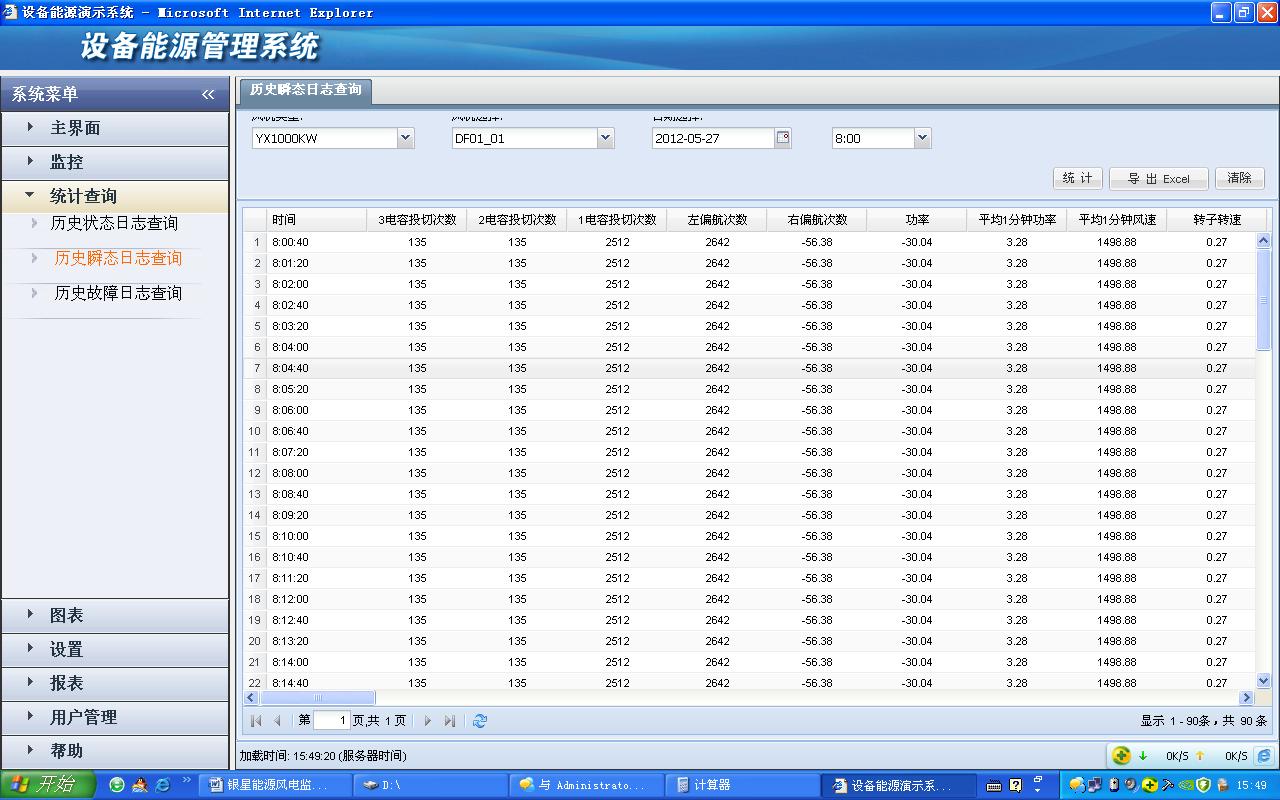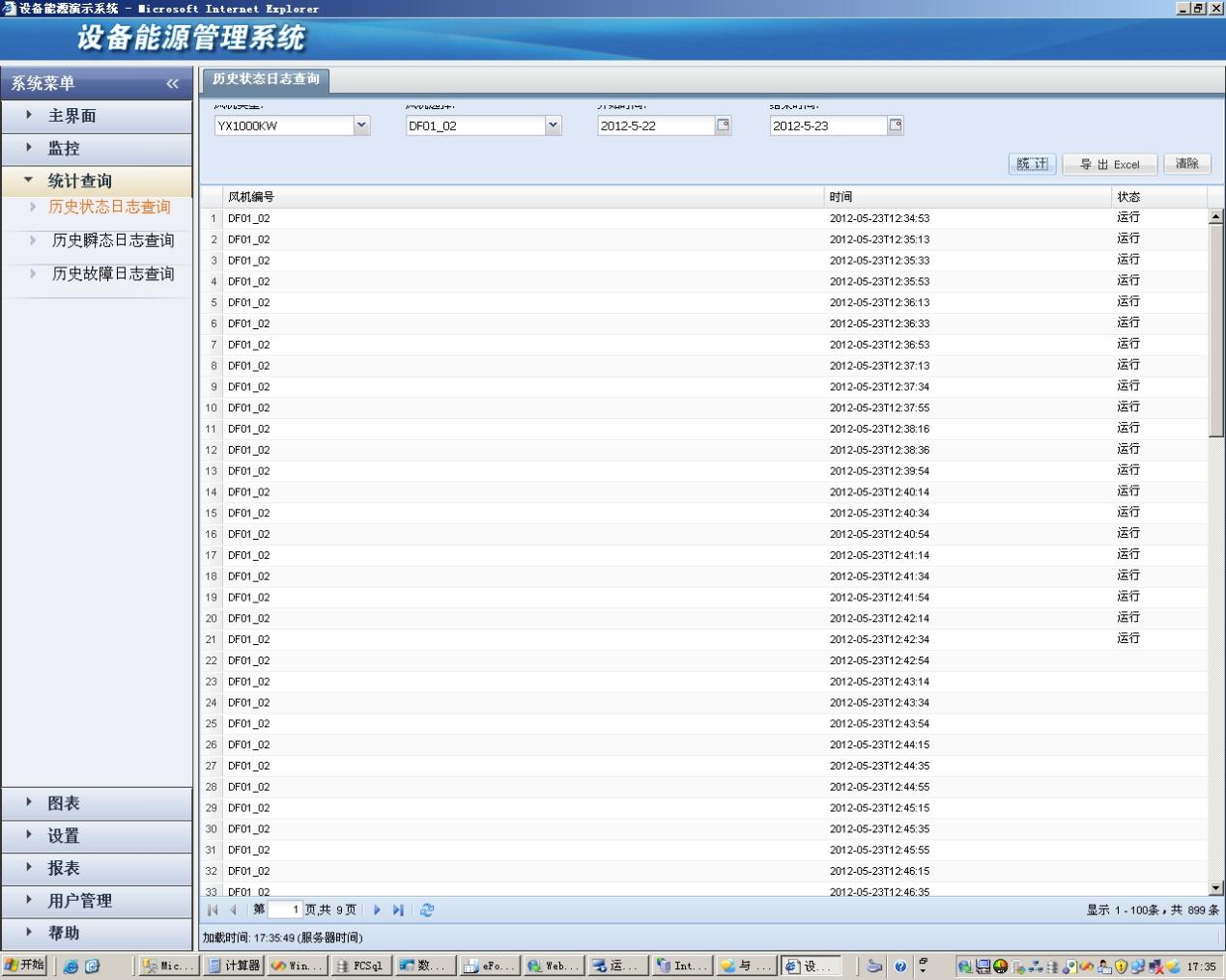 1) 歷史狀態(tài)日志查詢:根據(jù)選擇風(fēng)機(jī)及時(shí)間段,查詢風(fēng)機(jī)的歷史工作狀態(tài)。