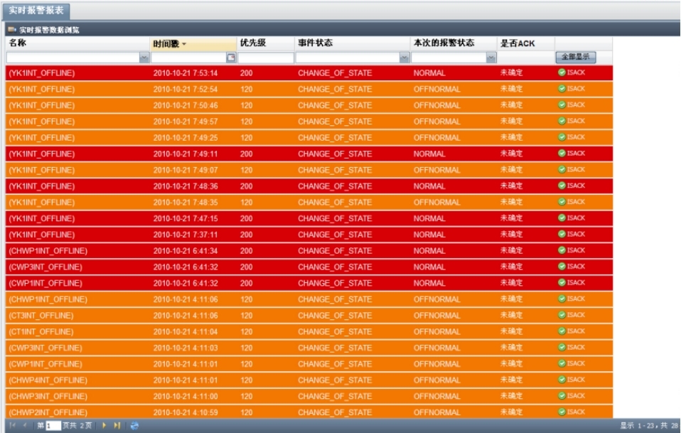 系統(tǒng)平臺利用多個報警模型,負(fù)責(zé)過程、設(shè)備、質(zhì)量、安全指標(biāo)、能源限額多種方式報警。包括模擬量報警、事件報警、重大變化連續(xù)重復(fù)報警、硬件設(shè)備報警等。支持一個完全分布式的報警系統(tǒng),報警及事件傳送,報警確認(rèn)處理以及報警記錄存檔。用戶可以自定義各種報警,報警信息可以通過不同方式傳送至用戶。
