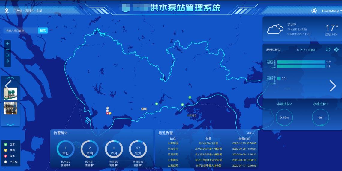 泵站信息管理系統(tǒng)集成了主設(shè)備狀態(tài)監(jiān)測(cè)、建筑物安全監(jiān)測(cè)、視頻監(jiān)控系統(tǒng)、門禁系統(tǒng)、環(huán)境監(jiān)測(cè)等多個(gè)功能模塊。該系統(tǒng)實(shí)時(shí)監(jiān)測(cè)泵站設(shè)備運(yùn)行狀態(tài)和建筑物的安全狀況,同時(shí)提供視頻監(jiān)控和門禁管理功能,確保泵站安全運(yùn)行。此外,系統(tǒng)還能監(jiān)測(cè)泵站周圍環(huán)境參數(shù),為制定科學(xué)的供水計(jì)劃提供依據(jù),實(shí)現(xiàn)水資源合理利用。