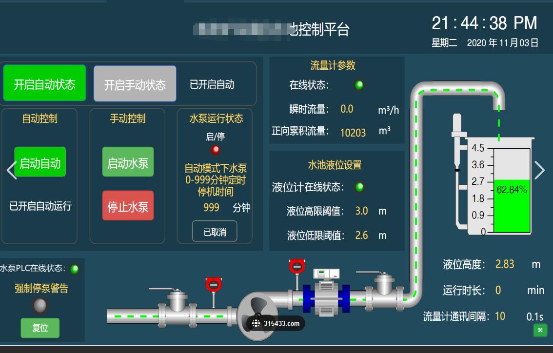 配置高性能服務(wù)器與數(shù)據(jù)存儲(chǔ)設(shè)備,用于接收、處理、存儲(chǔ)泵站數(shù)據(jù)。功能完備的組態(tài)監(jiān)控軟件平臺(tái)具備直觀的人機(jī)交互界面,展示泵站的工藝流程、設(shè)備運(yùn)行狀態(tài)、實(shí)時(shí)數(shù)據(jù)曲線等信息,方便操作人員實(shí)時(shí)了解泵站運(yùn)行情況,實(shí)現(xiàn)遠(yuǎn)程控制操作。