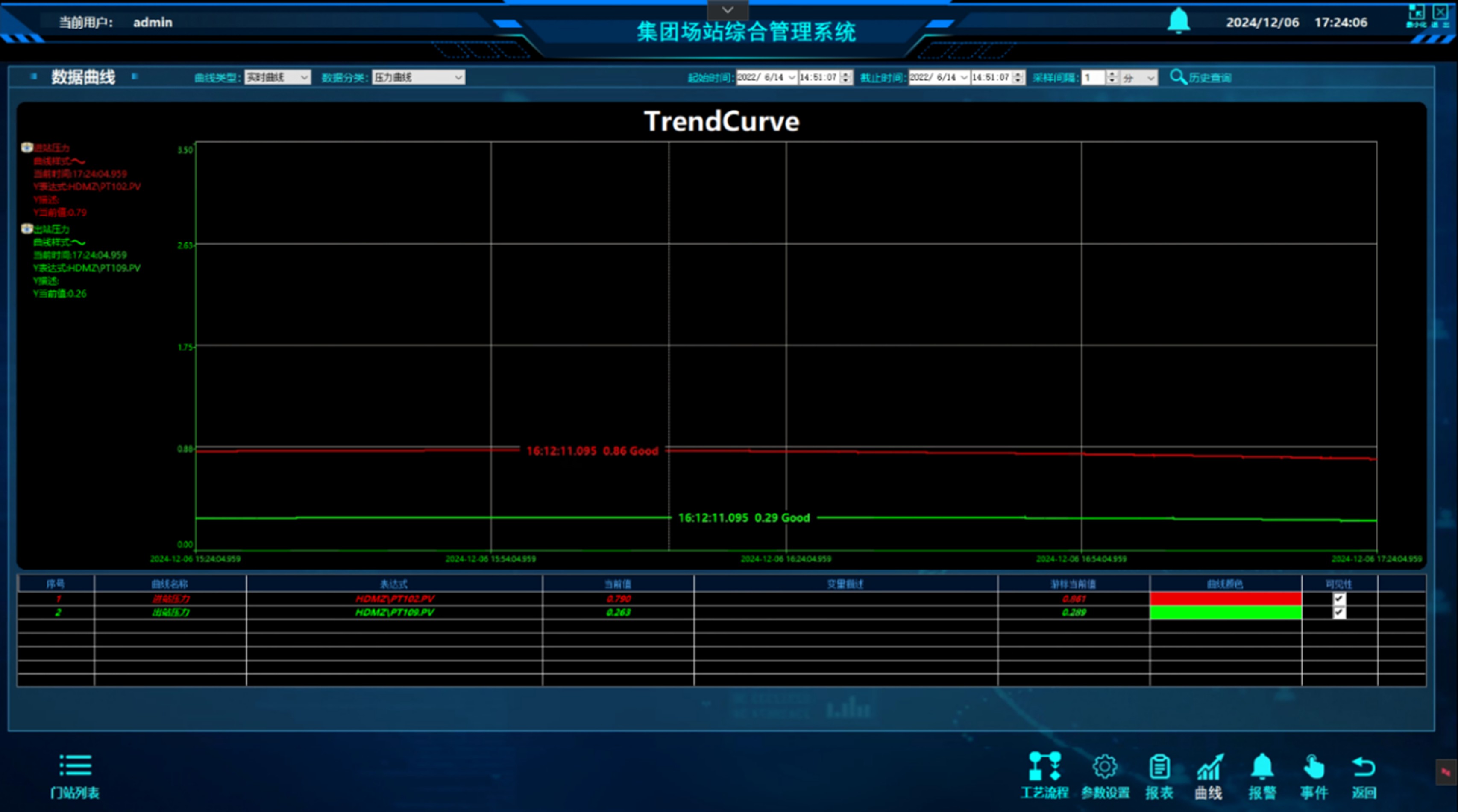 系統提供自定義時間段的趨勢曲線功能,可對比分析壓力、流量等參數的實時值與歷史數據,快速定位故障發生時間及演變趨勢。