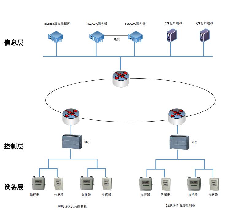 設備層:由現場運行設備、檢測儀表、高低壓電氣柜上智能單元、專用工藝設備附帶的智能控制器以及現場總線網絡等組成。