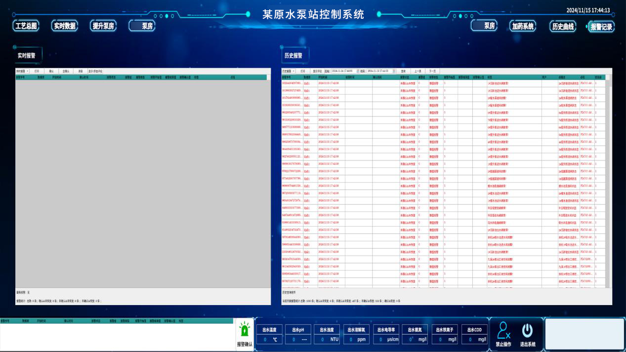 泵站調度系統對供水泵房設備運行狀態進行實時監測,確保異常工況即時捕獲,當壓力、流量等參數出現異常情況時,系統在10秒內觸發多級報警(聲光、彈窗、短信等),及時推送至操作人員,保障故障第一時間被發現并處理。