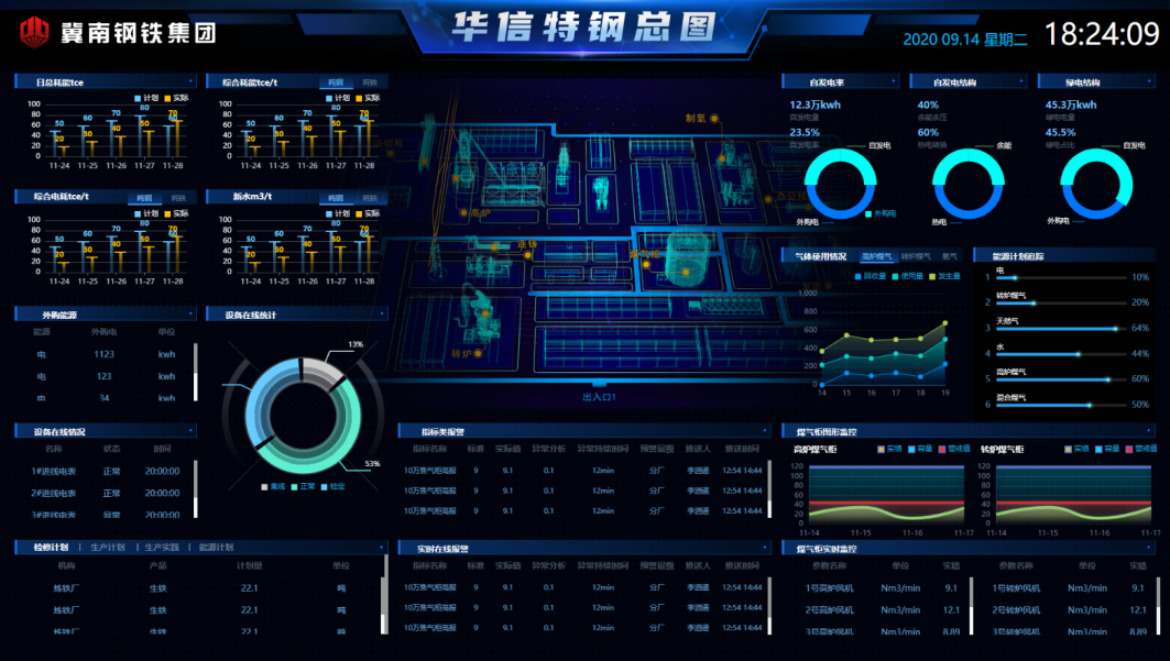 對全廠的有組織及無組織排放系統的實時監測,和環保車輛、視頻監控系統的數據互通以及建設危險源監管系統,將安全環保數據全面納入管控系統,打造數據綜合可視化展示平臺