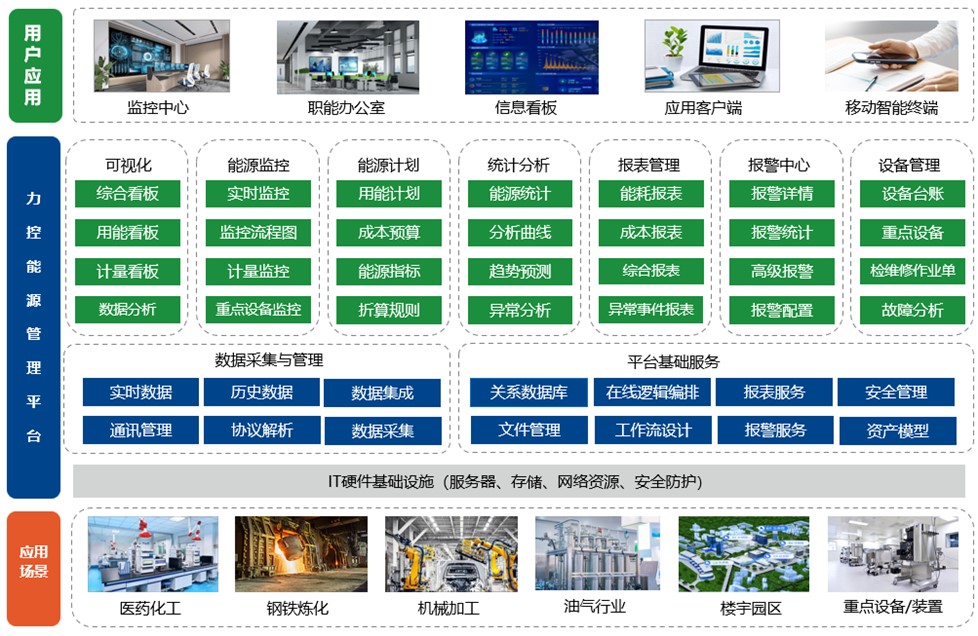 力控能源管理平臺,致力于賦能企業節能增效、能源管理轉型,通過結合工業大數據技術,為建筑、工業園區、高耗能企業提供能源管控一體化解決方案,從能源的采購、轉化、輸送及消耗等全過程,實現實時數據采集、監控、統計分析,保證供配水、電、氣等資源的集中管理與調度。