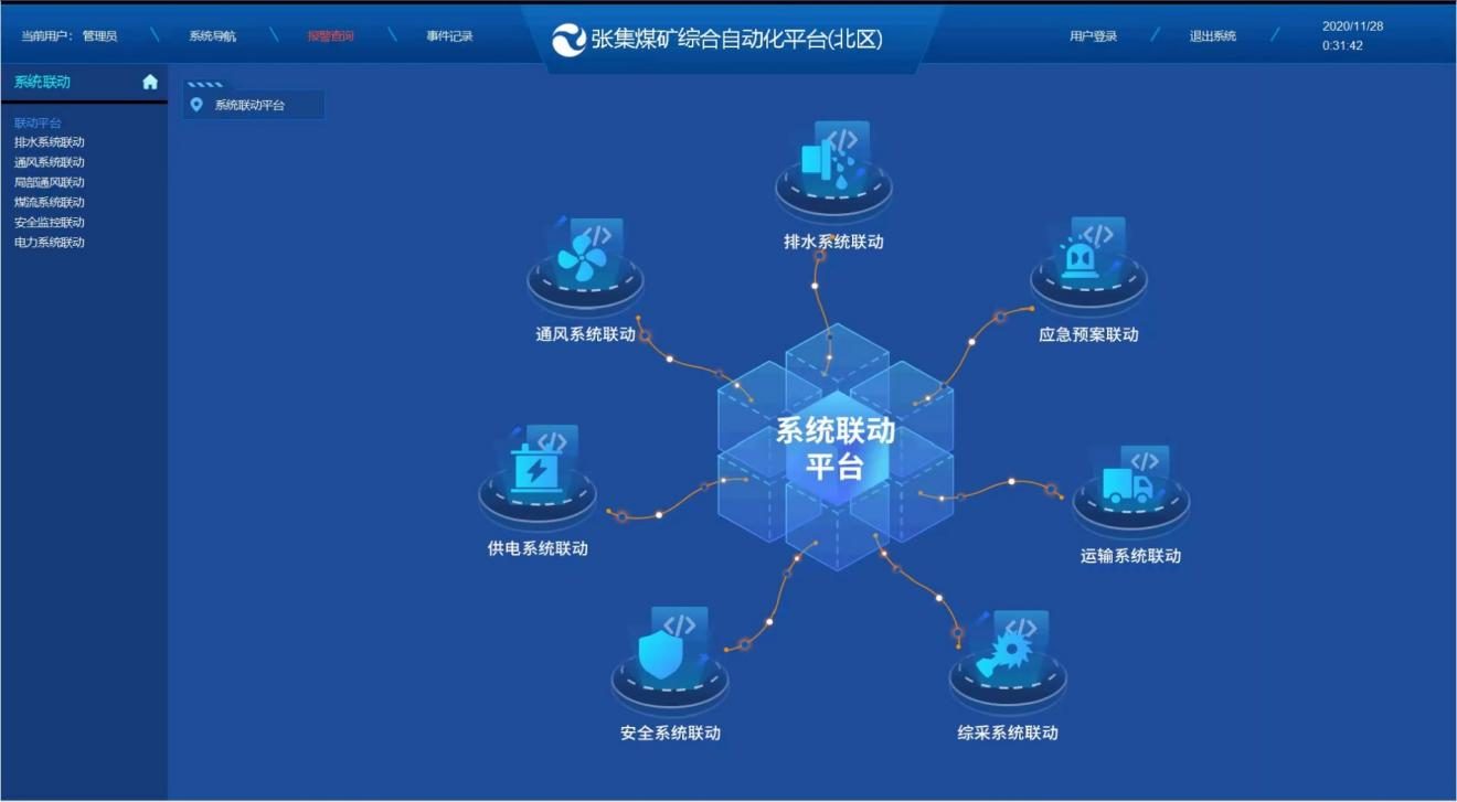 平臺系統集成了井上下所有的安全、生產、通信、動態目標類系統,數據實現了融合,同時向數據中心發送所有數據